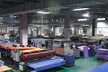 12條全自動化的中空板生產線,80余臺深加工機械,占地15000㎡實體廠房